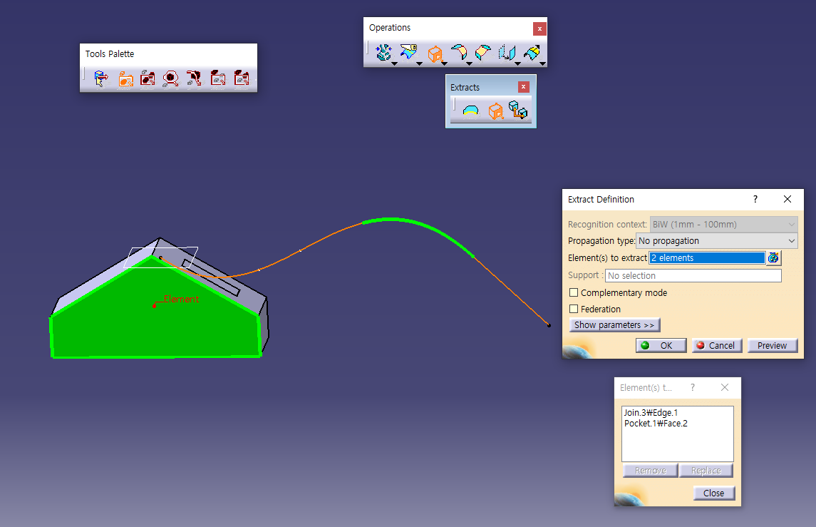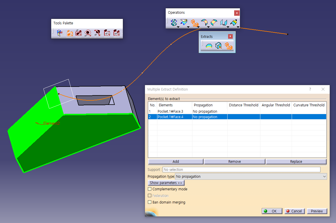 Surface의 Boundary만 추출가능 함.