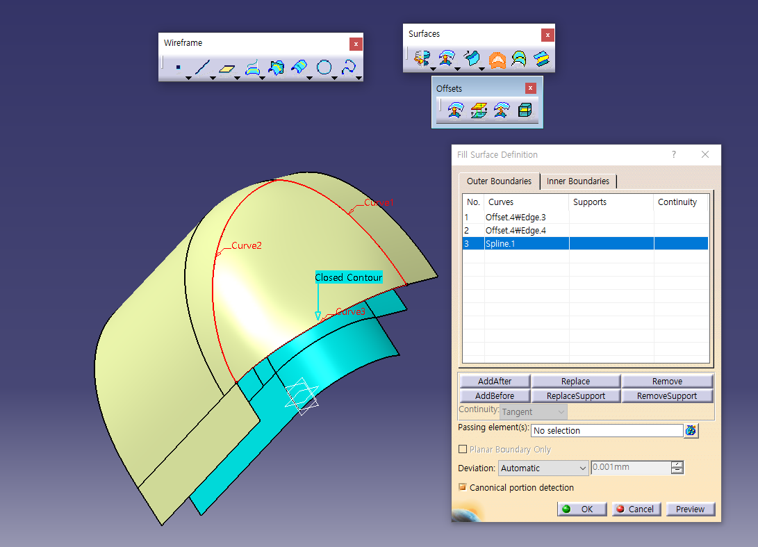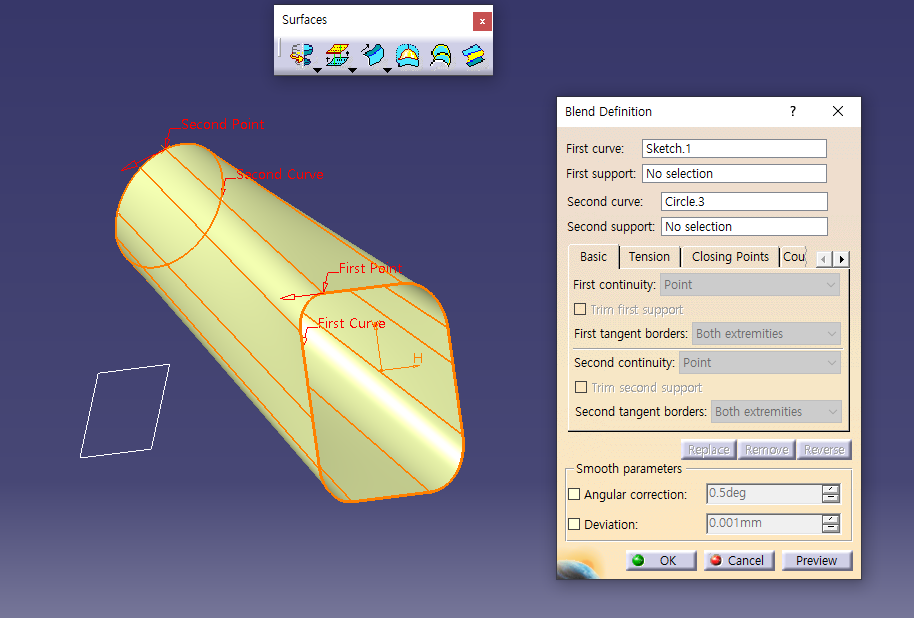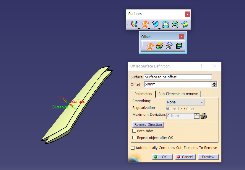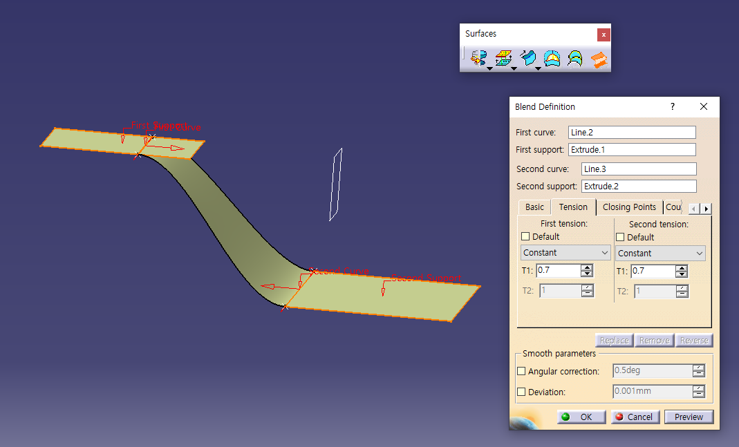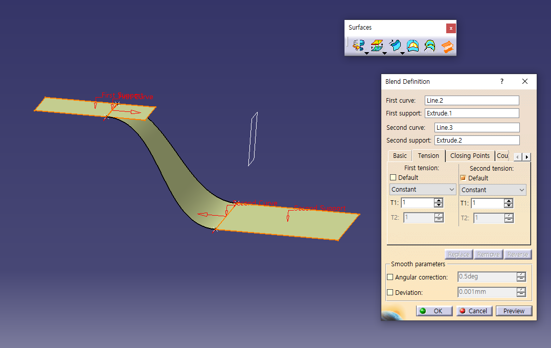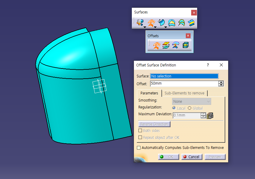 5월 30일 화요일 CATIA (Surfaces : Revolve / Offset / Variable Offset / Blend)