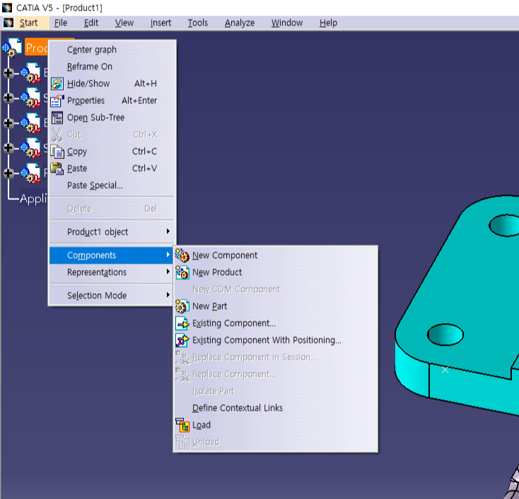 6월 13일 화요일 CATIA (Assembly Design : Constraints, Assembly Features, Catalog Browser, 저장하는 방법)