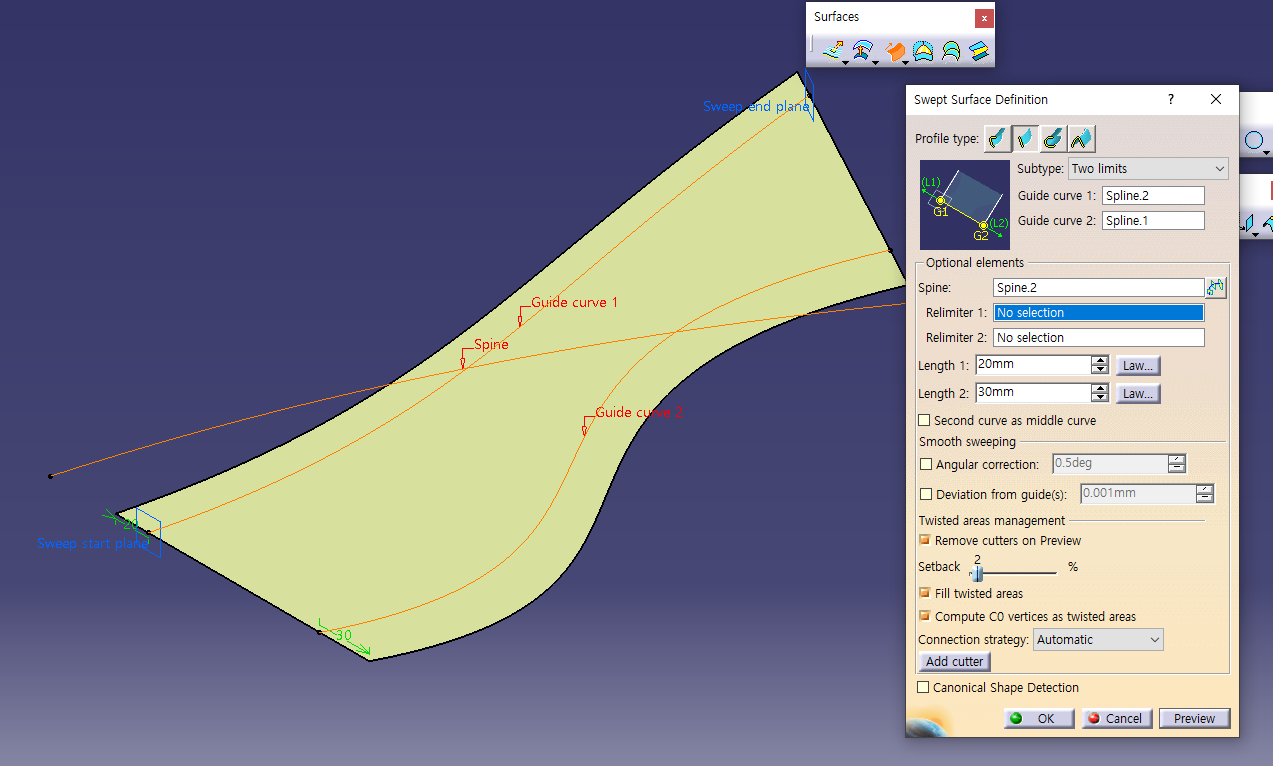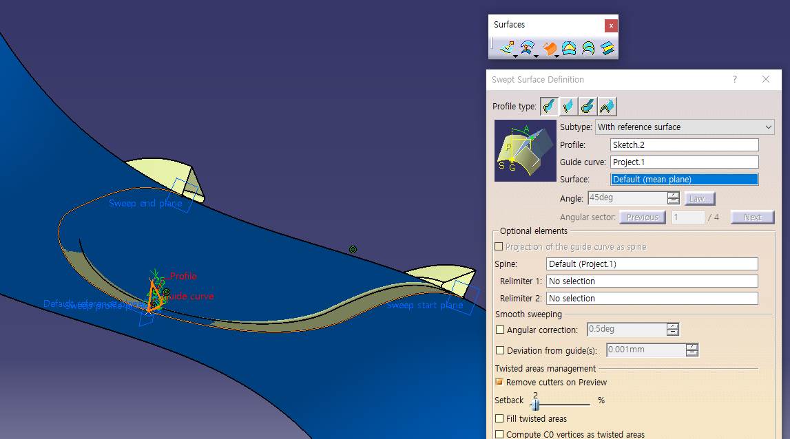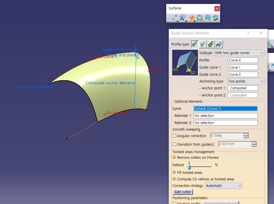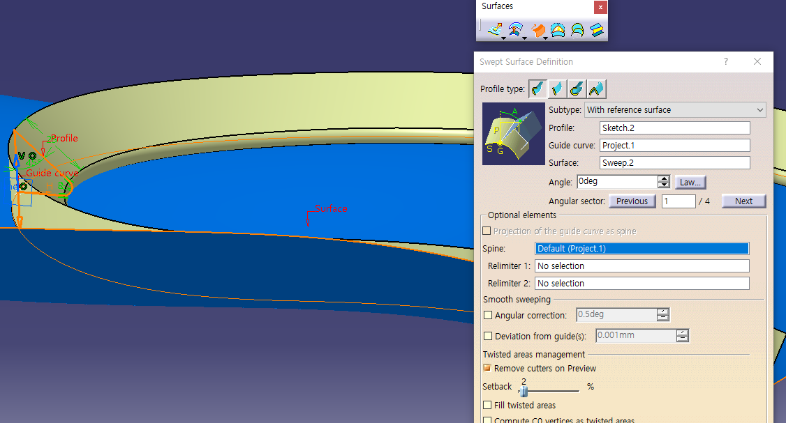 6월 2일 금요일 CATIA (Surfaces Sweep : Explicit, Implicit, Circle)