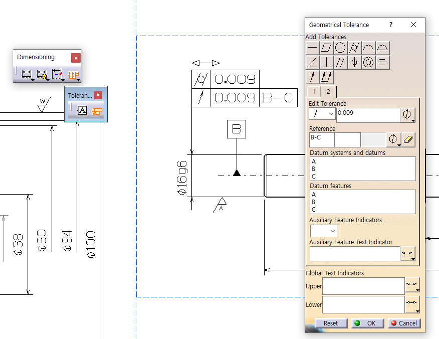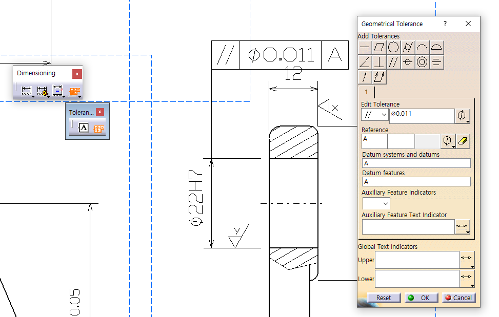 Add Tolerances 기호 누르면 두 번째 기하 공차 기호 생성할 수 있음.