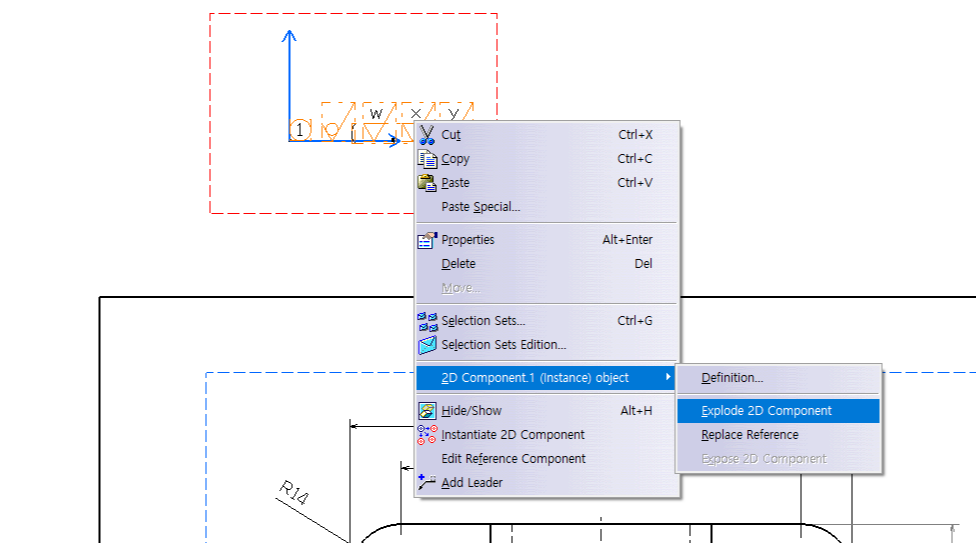 Exlpode 2D Component 눌러야 번호와 다듬질 기호를 따로따로 수정할 수 있음.