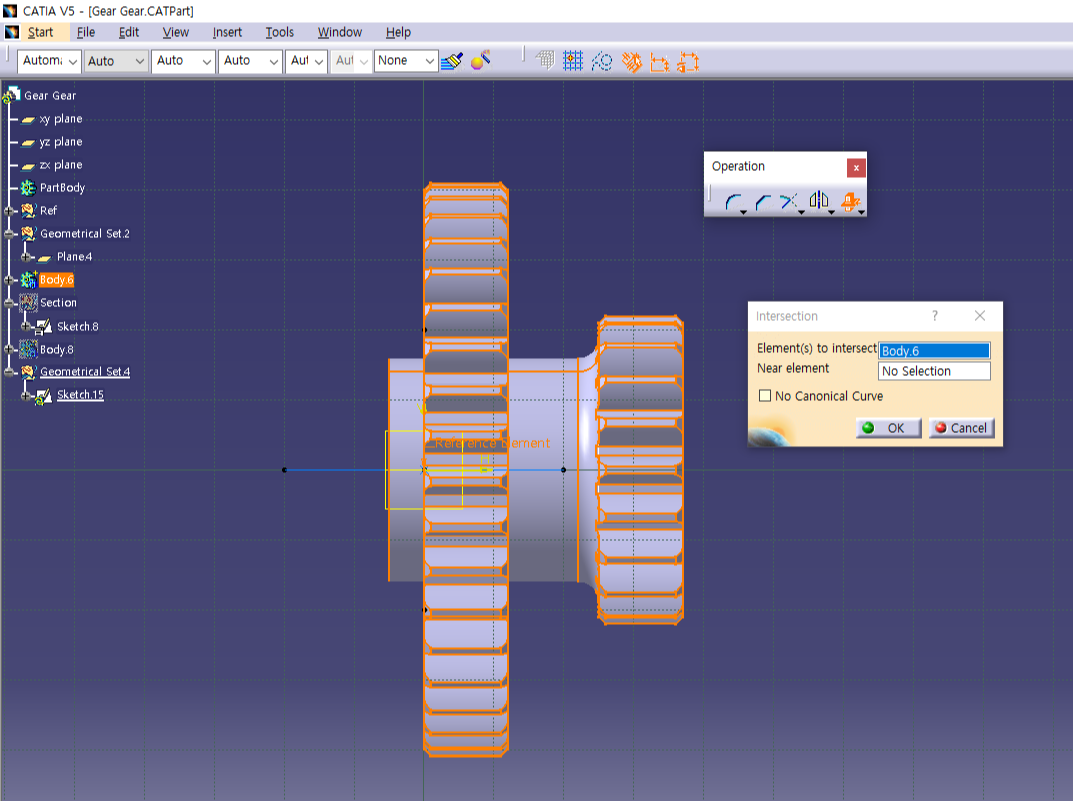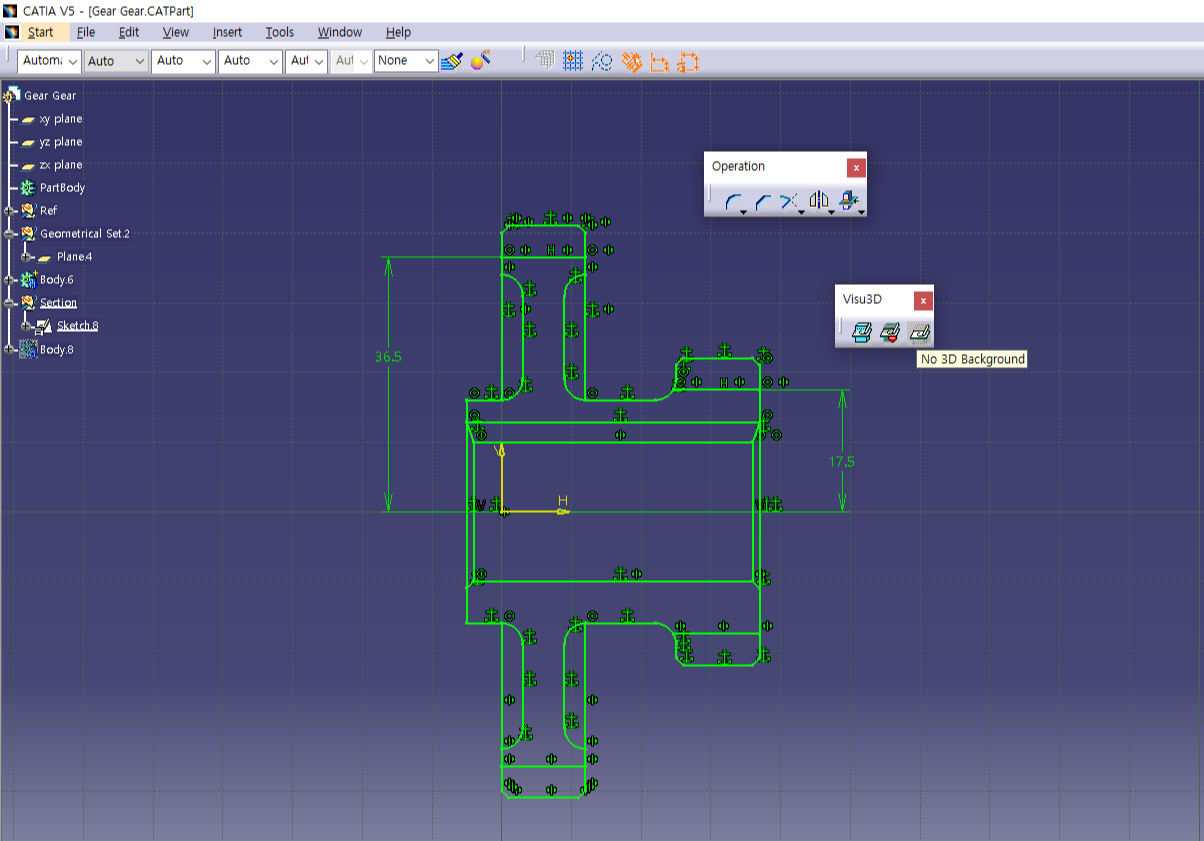 Part Design으로 돌아와서 만든 Sketch가 있는 Geometrical Set 클릭하면 위와 같이 생성됨